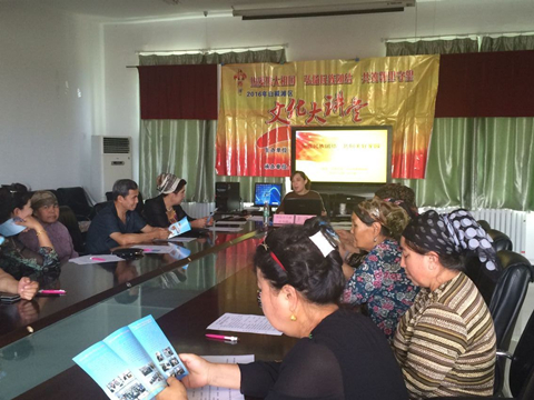 (通讯员:渠翠萍)2016年7月22日,文化大讲堂在芙蓉社区如期举行,本次讲座邀请的是来自白碱滩区图书馆馆员热依汗古丽·吐尔逊演讲,古丽演讲的主题《加强民族团结共创美好家园》,本次讲座全程用维语宣讲,吸引了很多少数民族市民前来参加。有40多名市民参加。